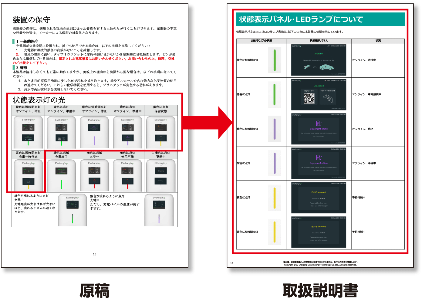 原稿の説明で足りない内容を補足する、イラストの中で強調したい部分に赤色の○印を付けるなど、エンドユーザーが内容を理解しやすくなるよう内容を改善しています。